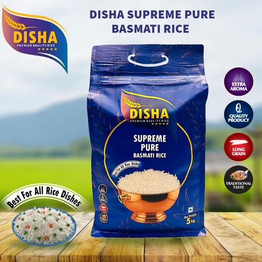 Disha Supreme Pure Basmati Rice 5kg –Best for All Rice Dishes Extra Aroma, Long Grain, Premium Quality, Traditional Taste (5kg)