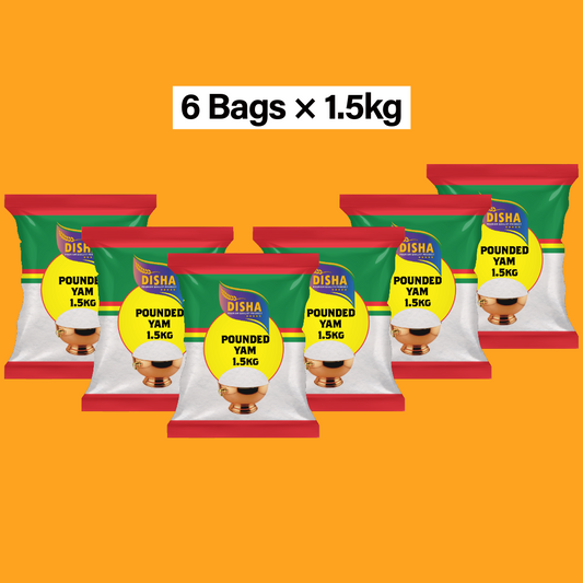 DISHA Pounded Yam,1.5kg (Pack of 6) – Premium Yam Flour for Smooth & Stretchy Pounded Yam | Authentic African Taste | Easy to Prepare | Gluten-Free | (9kg Total)